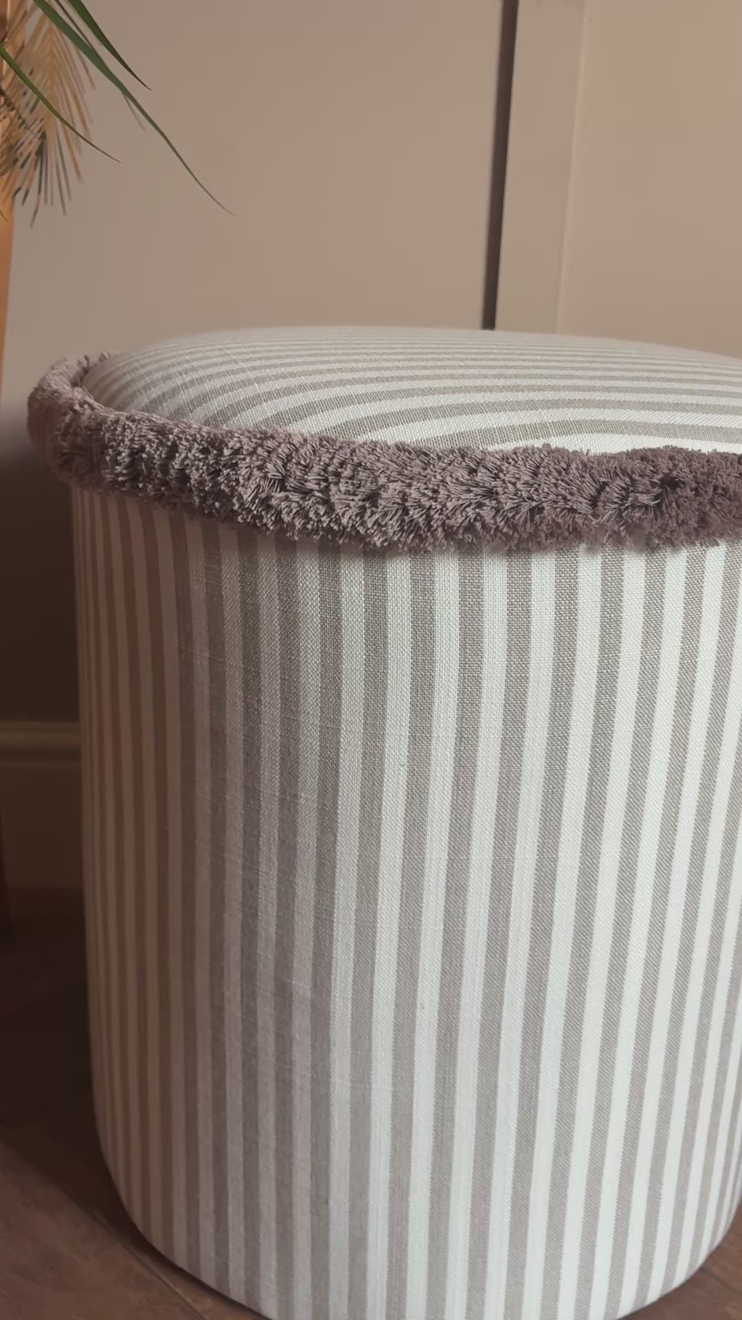 This wonderfully elegant and stylish footstool is finished with luxurious cotton ruche fringe trim in mushroom.